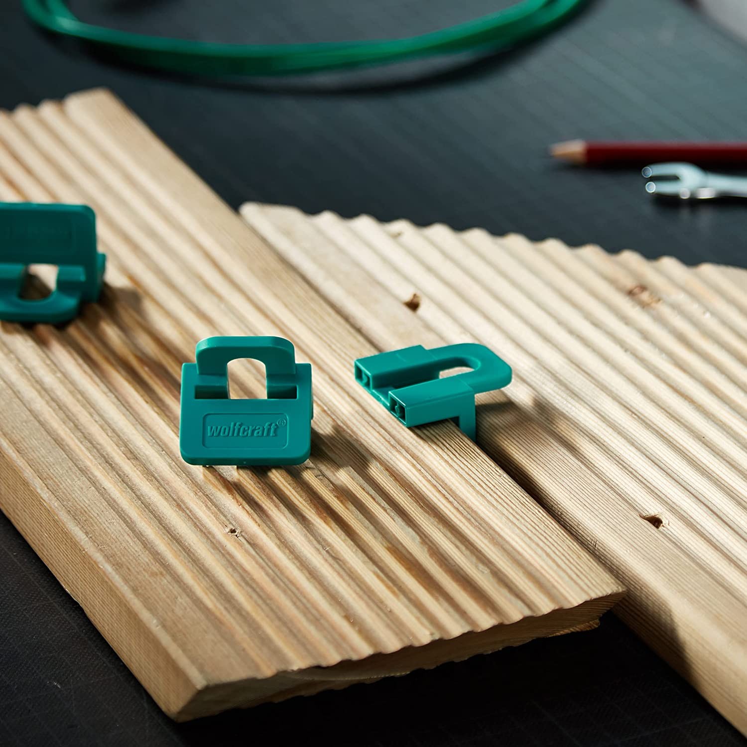 Adaptery dystansujące Wolfcraft zostały zaprojektowane z myślą o budowie tarasów, umożliwiając uzyskanie równomiernych odstępów między deskami tarasowymi. Dostępne w wersjach o odstępach 6 mm lub 8 mm, zapewniają precyzyjne i estetyczne rozmieszczenie desek. W połączeniu ze ściskiem montażowym, adaptery gwarantują równe ułożenie desek oraz wysoką jakość montażu.