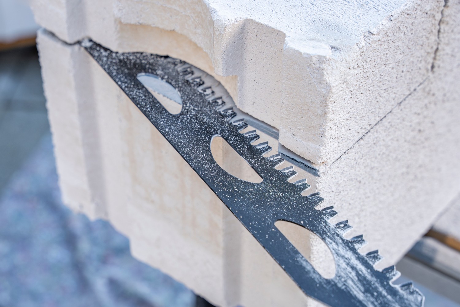 - Brzeszczot do piły szablastej przeznaczony do prostych, zgrubnych cięć w betonie komórkowym i pustakach.