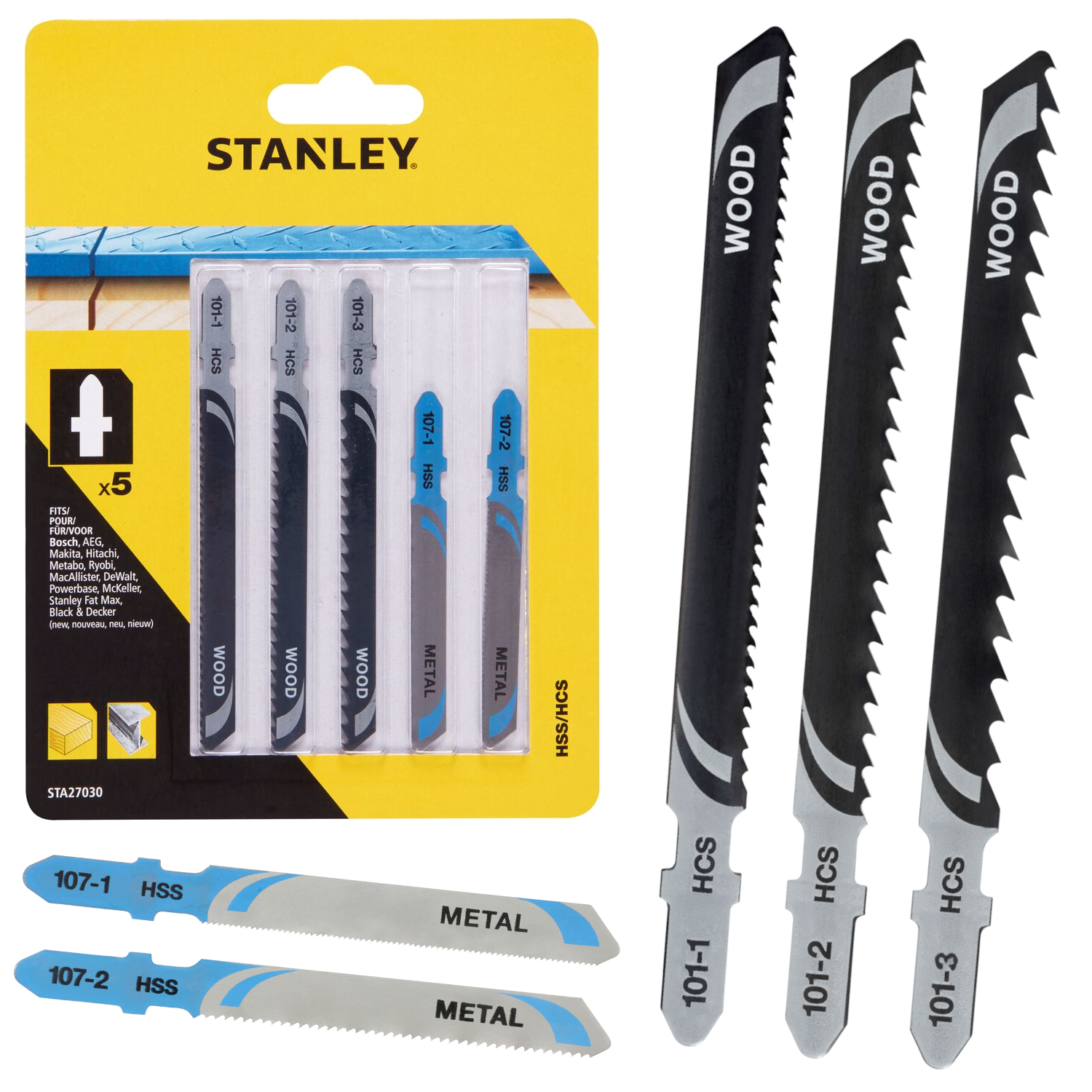 Brzeszczoty do wyrzynarek typ T - kpl. 5 szt. mieszany HCS/HSS Stanley