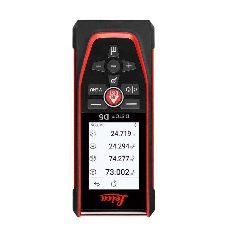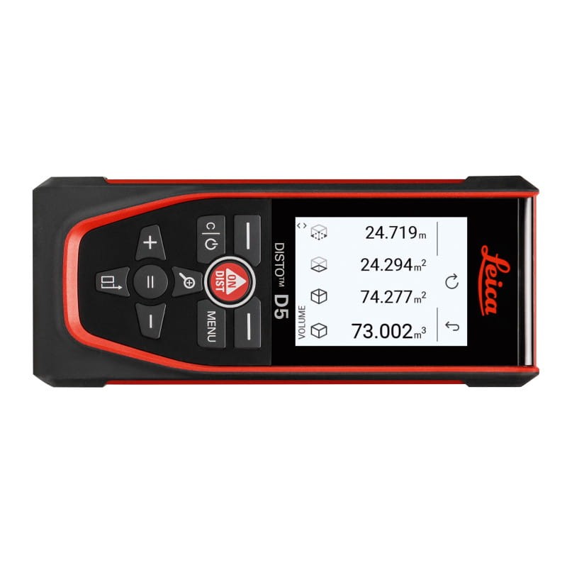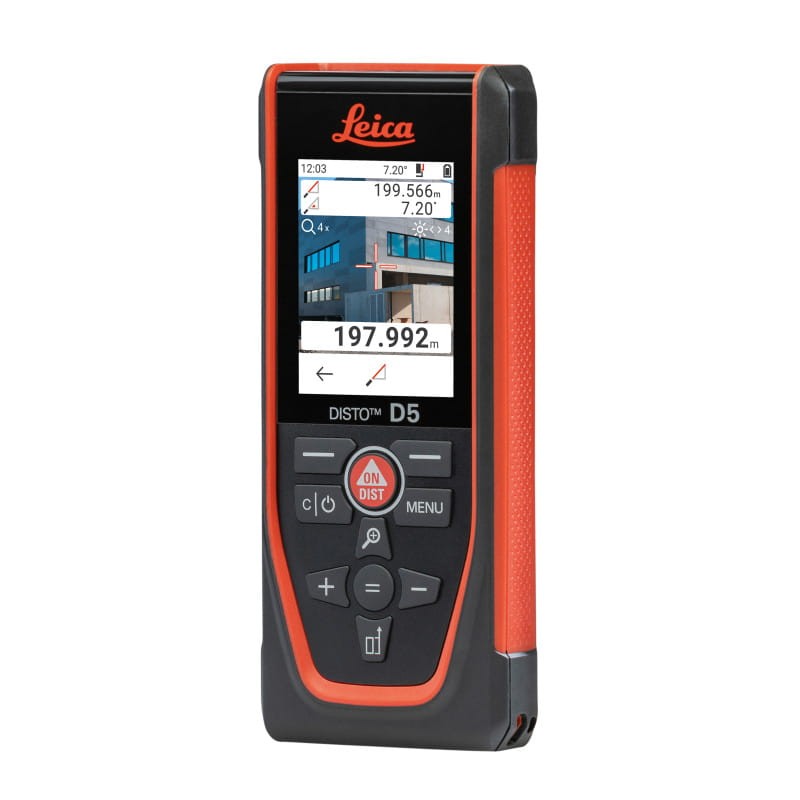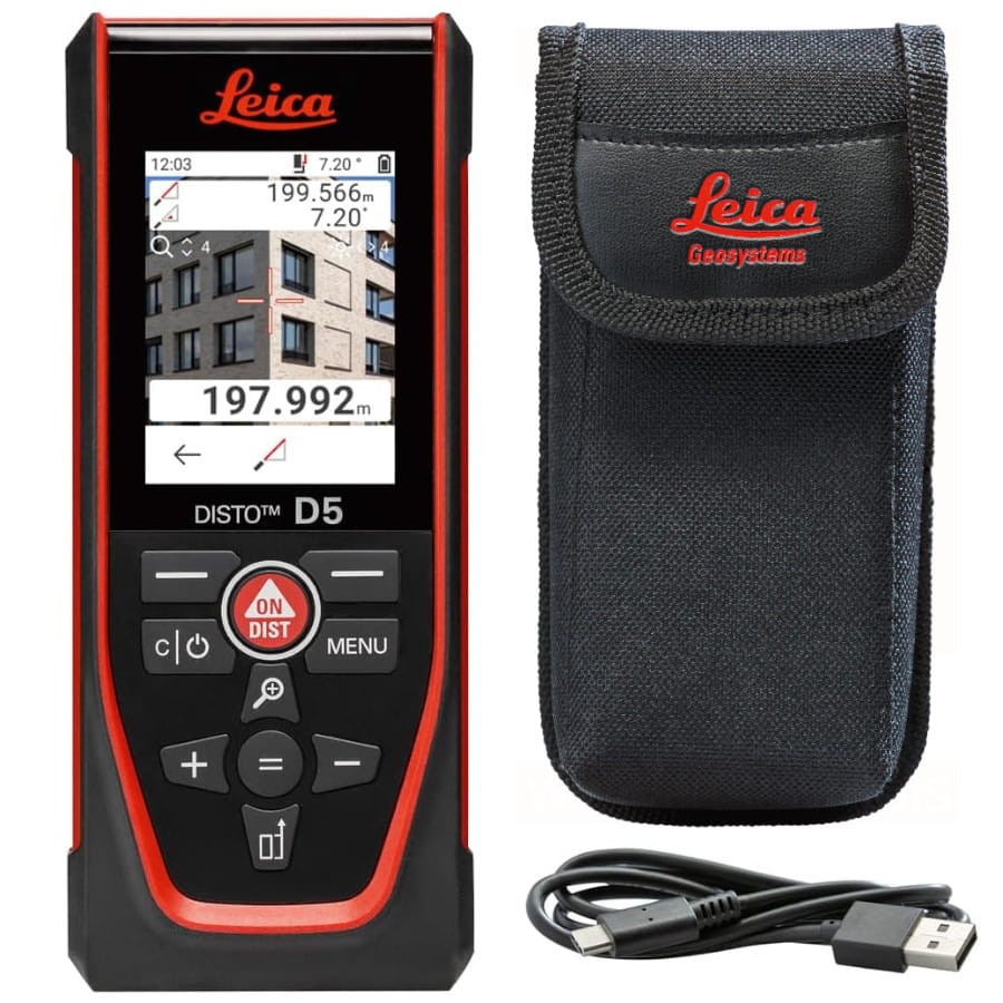 Leica Disto D5 oferuje szeroką gamę funkcji pomiarowych, w tym obliczanie powierzchni, kubatury, pochylenia, powierzchni trójkąta czy tyczenie odcinków. Posiada także pochyłomierz o zakresie 360°, umożliwiający wykonywanie pomiarów pośrednich. Urządzenie charakteryzuje się dużym zasięgiem pomiaru wynoszącym aż 200 metrów, przy zachowaniu imponującej dokładności 1 mm, co jest potwierdzone certyfikatem.