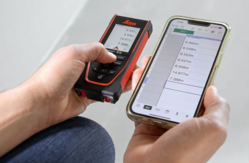 Wyniki pomiarów można wygodnie przesyłać za pomocą Bluetooth do aplikacji Leica Disto Plan, dostępnej na urządzenia z systemami iOS i Android. Aplikacja umożliwia tworzenie cyfrowych szkiców i rzutów pomieszczeń, a opcja Smart Room pozwala na szybkie generowanie planów (funkcja dostępna jako dodatkowo płatna). Dalmierz został również wyposażony w funkcję bezdotykowego wywołania pomiaru gestem przed obiektywem, co zwiększa precyzję pracy na dużych dystansach.