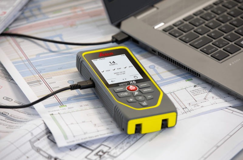 Dalmierz współpracuje także z adapterem Leica DST 360-X, dzięki czemu realizuje pomiary współrzędnościowe (X, Y, Z), inwentaryzuje obiekty o złożonych kształtach, mierzy powierzchnie dachów oraz długości trudno dostępnych odcinków. Wyniki pomiarów są prezentowane na dużym, dotykowym i podświetlanym ekranie z funkcją obrotu, co gwarantuje czytelność i wygodę użytkowania.