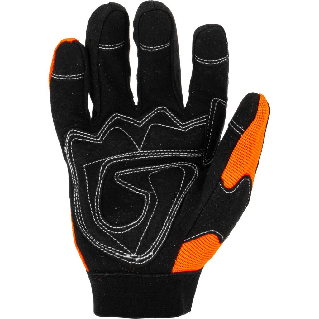 Część chwytna rękawicy została wzmocniona, dzięki czemu skutecznie chroni przed przetarciami nawet podczas intensywnej pracy. Dodatkowo, miękka poduszka na dłoni minimalizuje ryzyko powstawania odcisków i łagodzi wibracje, zwiększając komfort przy długotrwałym użytkowaniu.