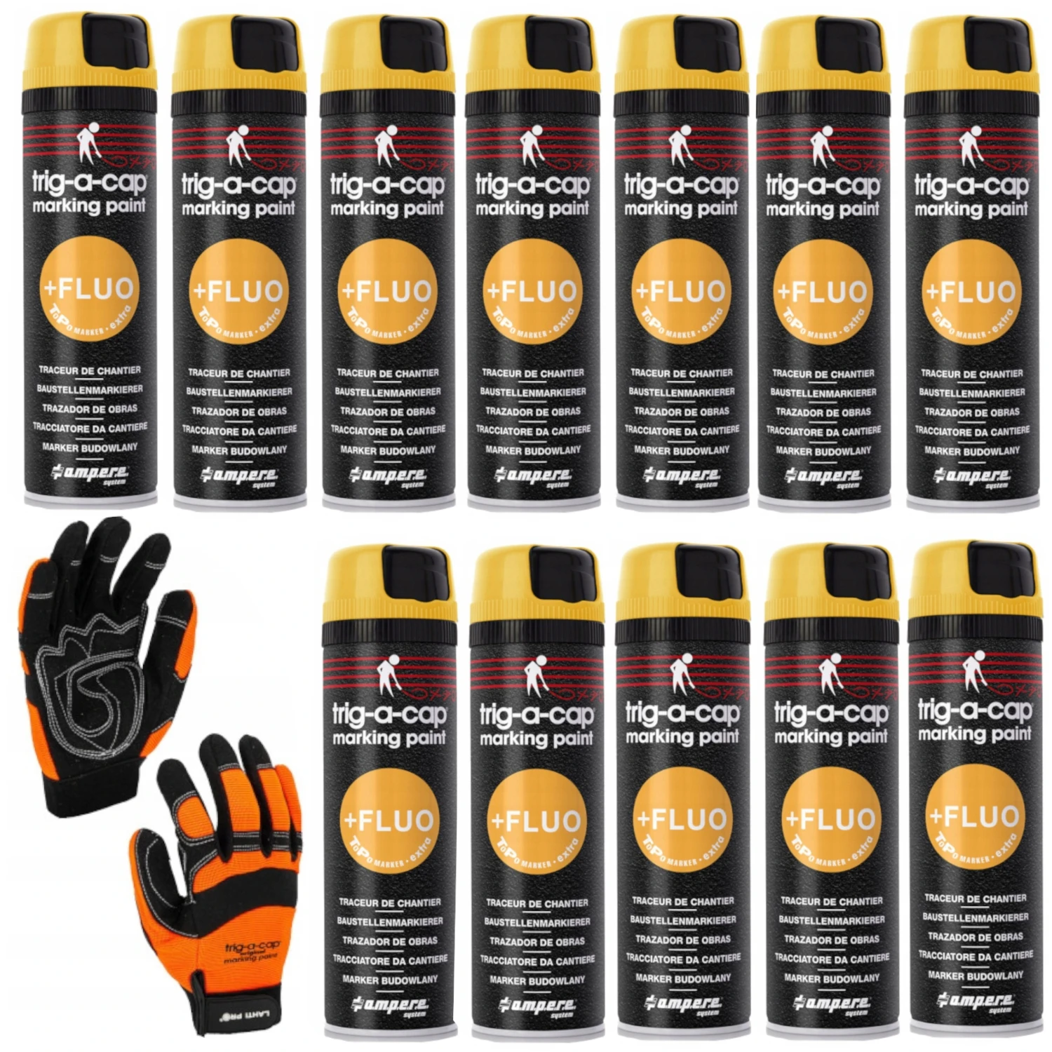Ampere Farba geodezyjna żółta 500 ml 630462100 TRIG-A-CAP 12szt. + Rękawice XL Lahti Pro GRATIS