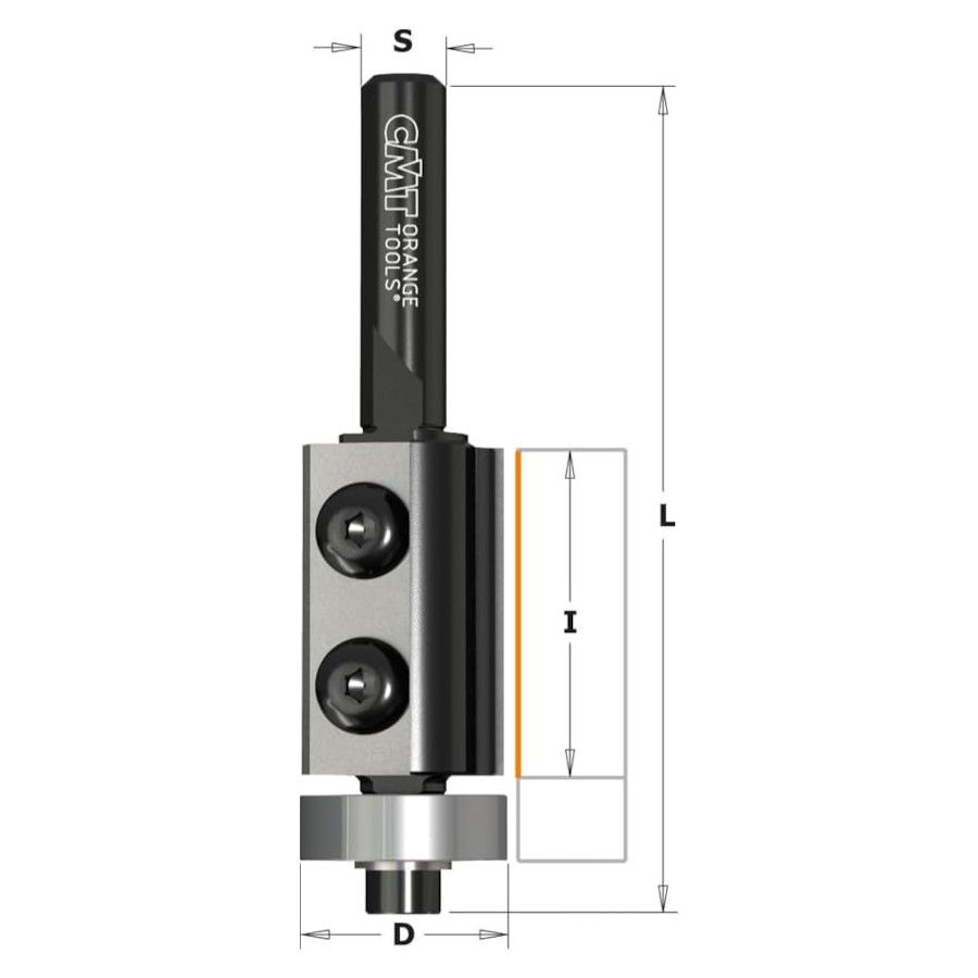 - Frez prosty na płytki wymienne z łożyskiem D=19 I=30 S=8 Z2 CMT 657.191.11