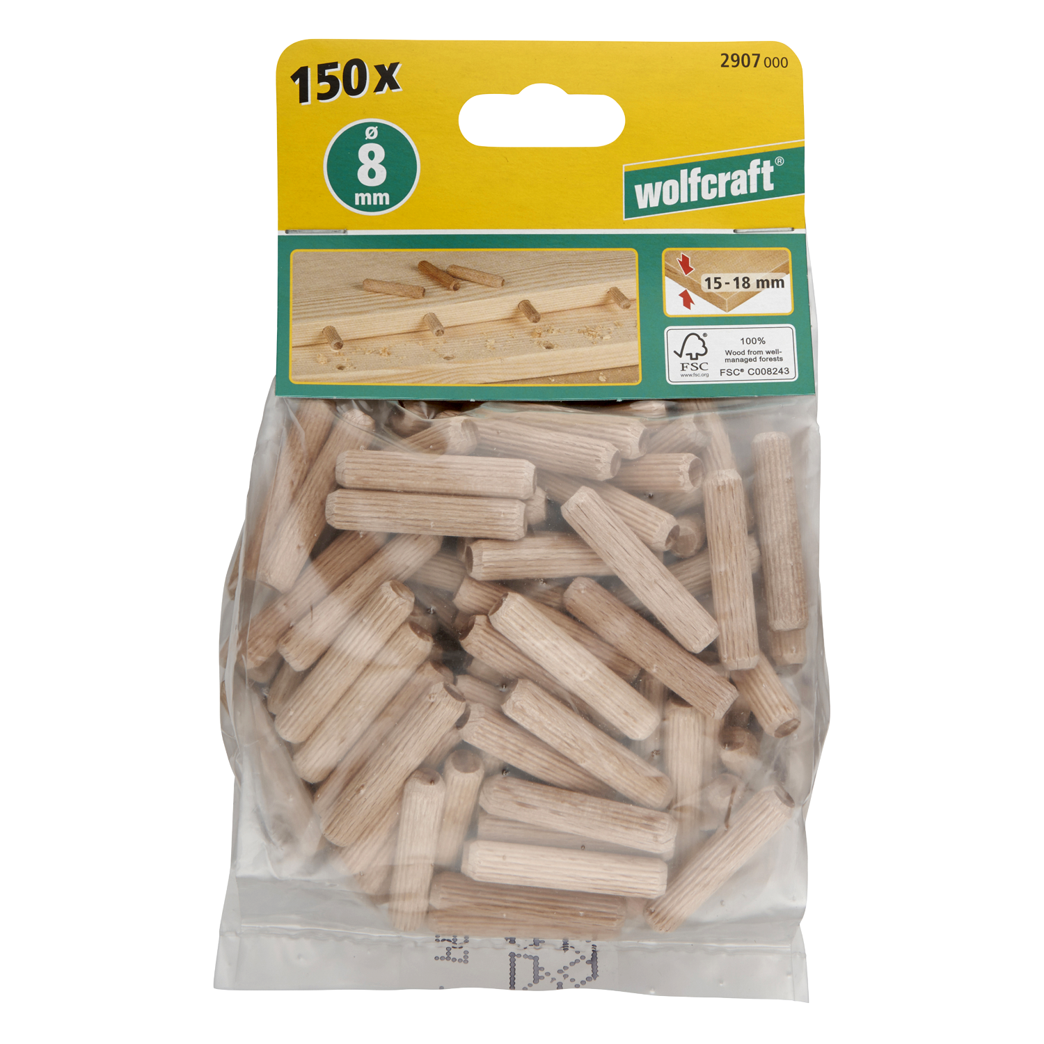 WOLFCRAFT 2907000 Kołki drewniane do mebli 8 x 40 mm 150 sztuk