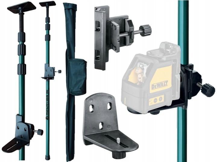 - Uchwyt do mocowania urządzeń to prosty element który po ustawieniu żądanej wysokości blokujemy śrubą. Jest wyposażony w uniwersalny gwint 1/4" co sprawia że zamontujemy na nim praktycznie wszystkie urządzenia laserowe dostępne na rynku. Sam uchwyt możemy również użyć bezpośrednio na ścianie montując go na kołku czy haku co zwiększa funkcjonalność całego zestawu.