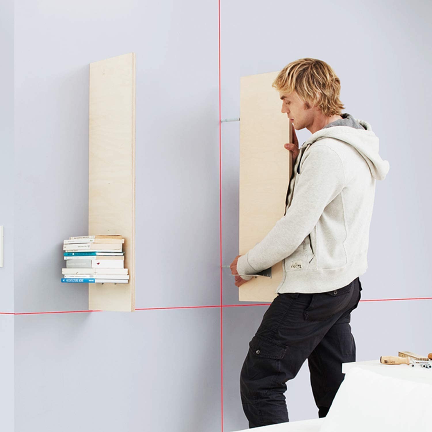 - Laser krzyżowy Quigo II firmy Bosch z czerwoną wiązką lasera