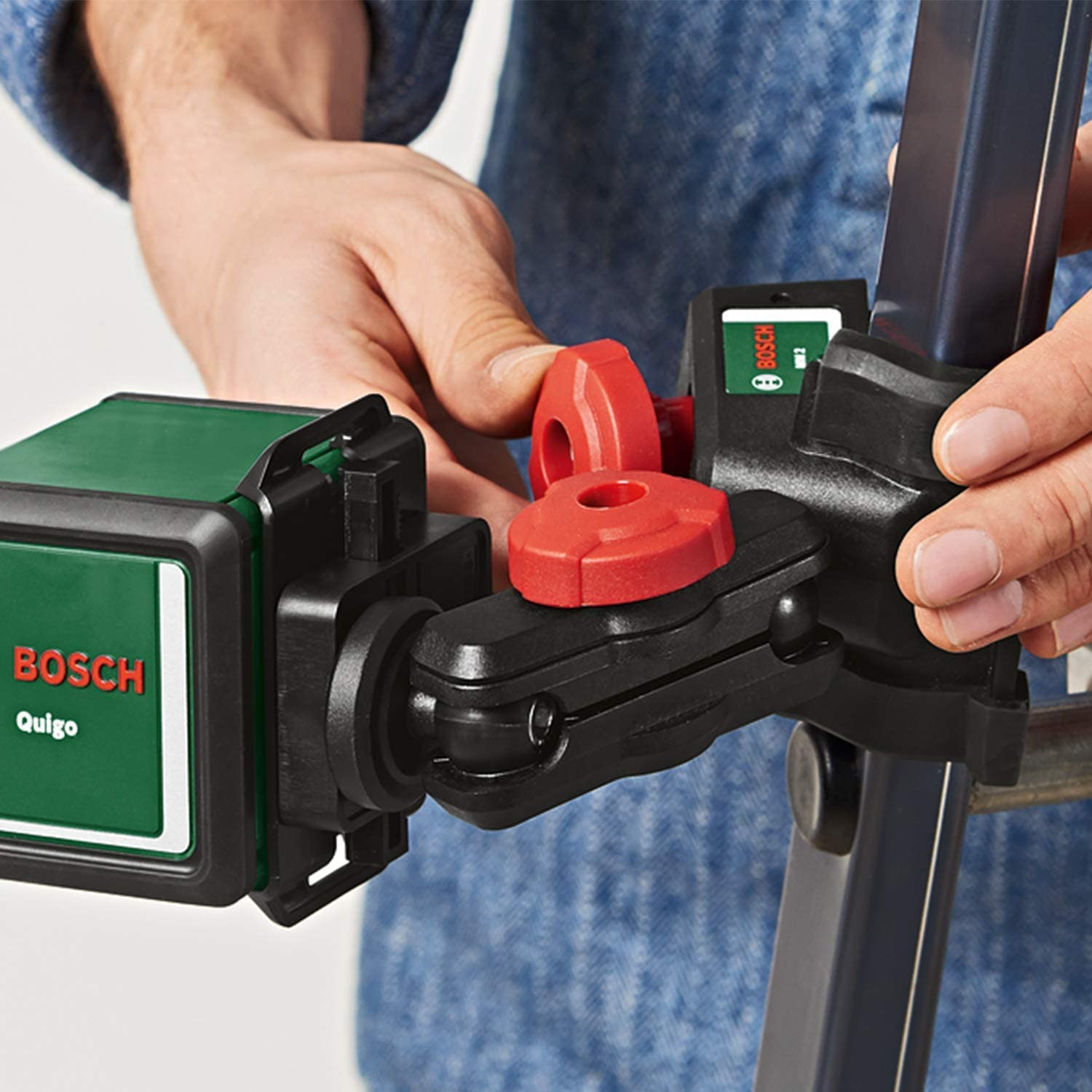 BOSCH Laser krzyżowy QUIGO II + wielofunkcyjny uchwyt MM 2 + tyczka GT-360