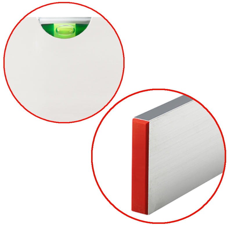 - Libelka pozioma i pionowa o wysokiej dokładności pomiaru zapewniają perfekcyjne wypoziomowanie i pionowanie powierzchni.