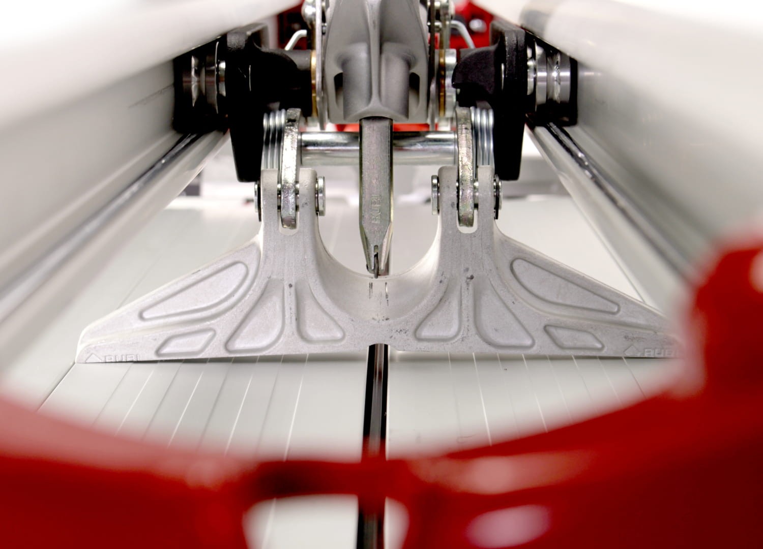 - Geometria prowadnic wykonanych z aluminium ciągnionego zapewnia optymalną wydajność wózka oraz umożliwia zmniejszenie mocy wymaganej podczas nacinania
