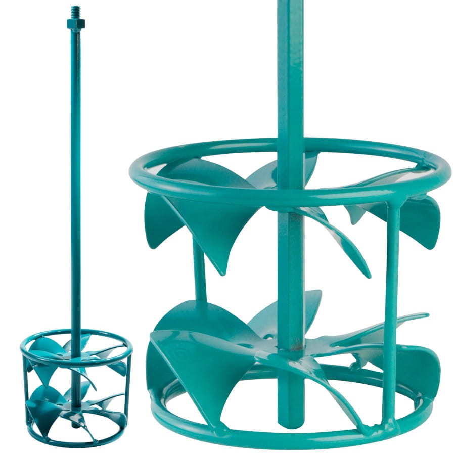 - Kształt mieszadła to efekt wieloletnich prób i eksperymentów przy współpracy z producentami mas samopoziomujących i posadzek samorozlewnych