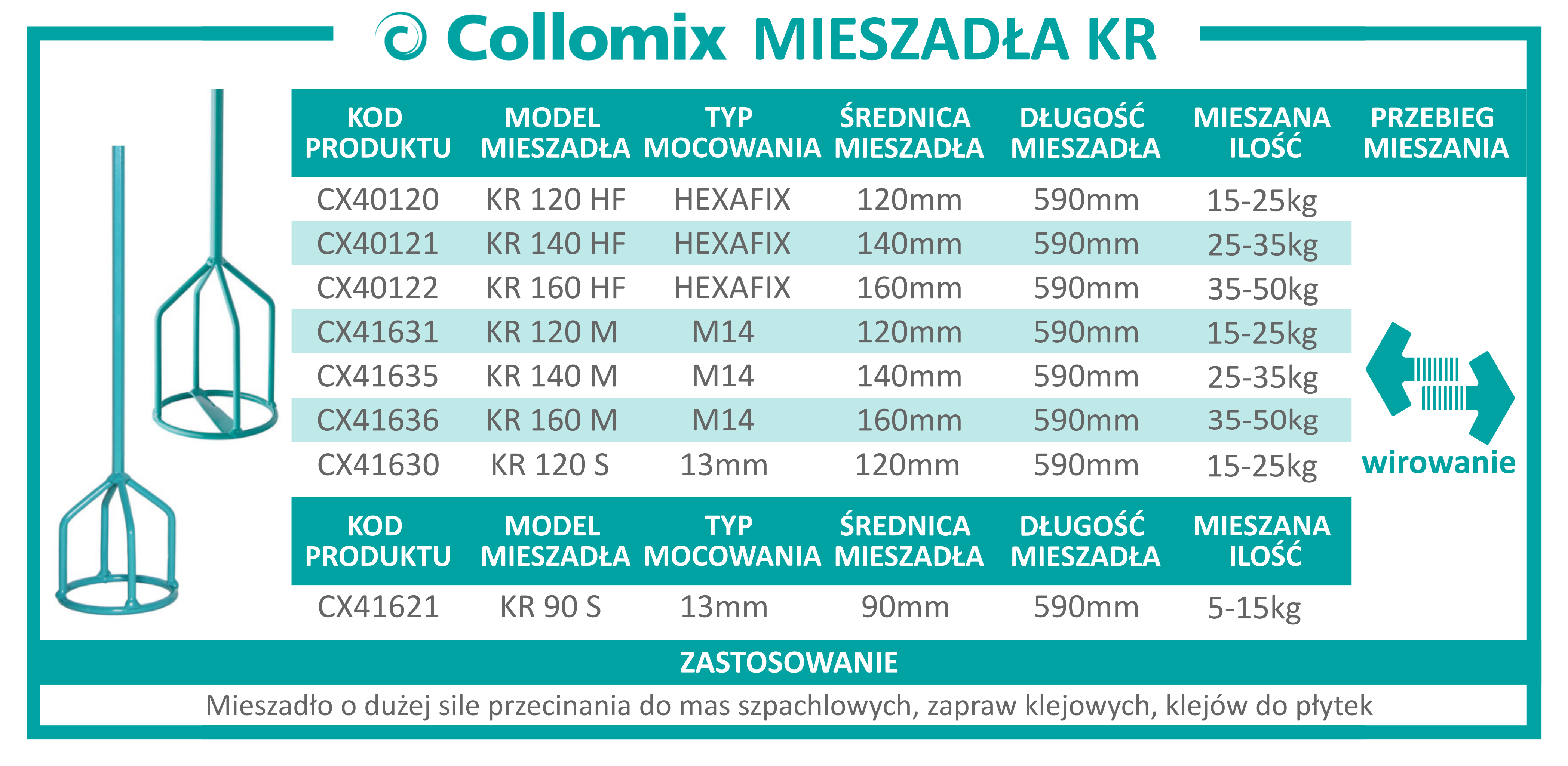 COLLOMIX 40121 Mieszadło KR 140 HF do mas lepkich