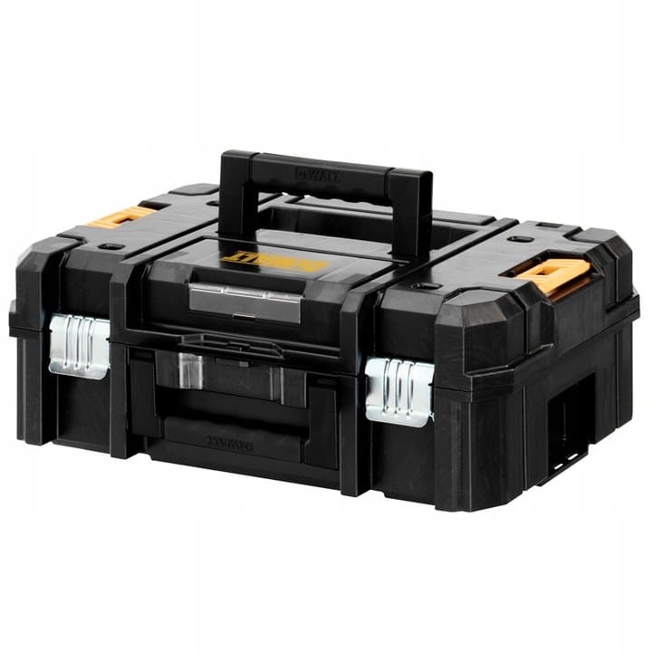 Skrzynia narzędziowa TSTAK DEWALT to solidne i wytrzymałe rozwiązanie do przechowywania zarówno bezprzewodowych, jak i sieciowych elektronarzędzi wraz z niezbędnymi akcesoriami i osprzętem. Jej trwała konstrukcja zapewnia maksymalną odporność na uszkodzenia mechaniczne, co czyni ją profesjonalną alternatywą dla tradycyjnych skrzynek narzędziowych.
