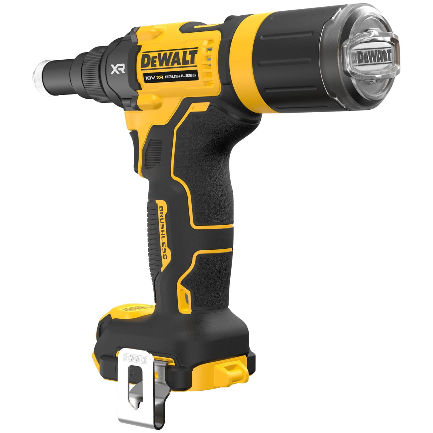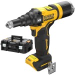 - Nitownica jest wyposażona w bezszczotkowy silnik 18V XR®, który zapewnia siłę ciągnącą do 10 kN i umożliwia obróbkę do 800 nitów ze stali nierdzewnej o średnicy 4,8 mm na jednym ładowaniu.