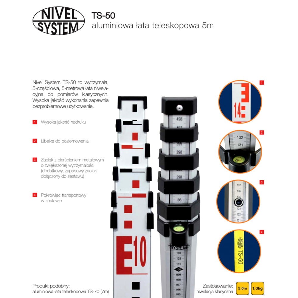 NIVEL SYSTEM TS-50 Aluminiowa łata teleskopowa 5m