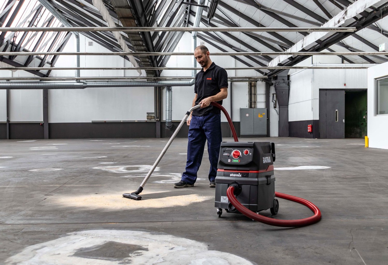 Starmix ISC Batrix L 36-18V to pierwszy na świecie bezprzewodowy odkurzacz przemysłowy do pracy na sucho i mokro, który oferuje moc porównywalną z tradycyjnymi urządzeniami sieciowymi. Zasilany dwoma akumulatorami 18V (brak w zestawie), może pracować nawet do 100 minut, co czyni go idealnym rozwiązaniem na plac budowy, do warsztatu czy w terenie – wszędzie tam, gdzie dostęp do zasilania jest ograniczony.