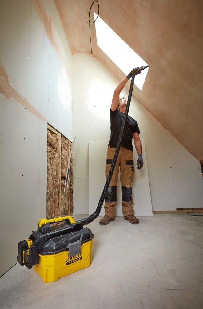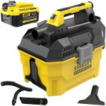 Stanley SFMCV002 to wydajny, bezprzewodowy odkurzacz przemysłowy z serii STANLEY® FATMAX® V20, zaprojektowany do pracy na sucho i mokro. Zasilany nowoczesnymi akumulatorami litowo-jonowymi 18V (zalecane: 2,0 Ah lub 4,0 Ah), stanowi część uniwersalnego systemu V20 – jednego źródła zasilania dla całej gamy narzędzi Stanley.
