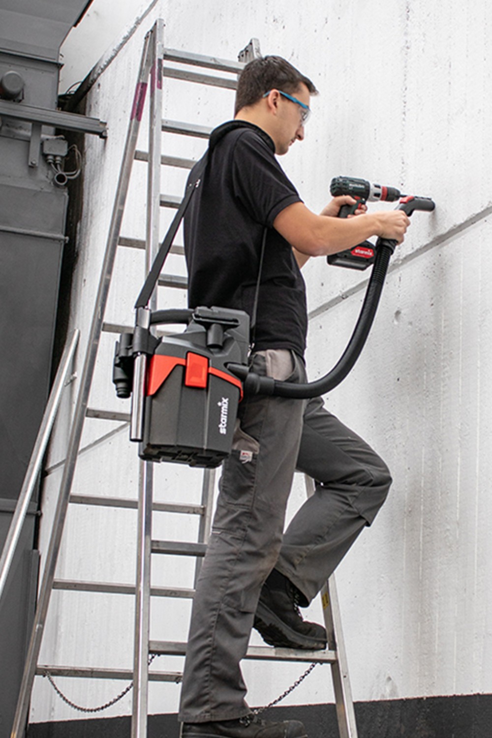 Starmix SMART L 18V to mobilny, lekki i wyjątkowo poręczny odkurzacz akumulatorowy, zaprojektowany z myślą o profesjonalnych zastosowaniach w warunkach budowlanych i przemysłowych. Dzięki zasilaniu w systemie CAS (Cordless Alliance System) na akumulatorach 18 V (do 10.0 Ah), urządzenie zapewnia pełną swobodę pracy bez dostępu do zasilania sieciowego.