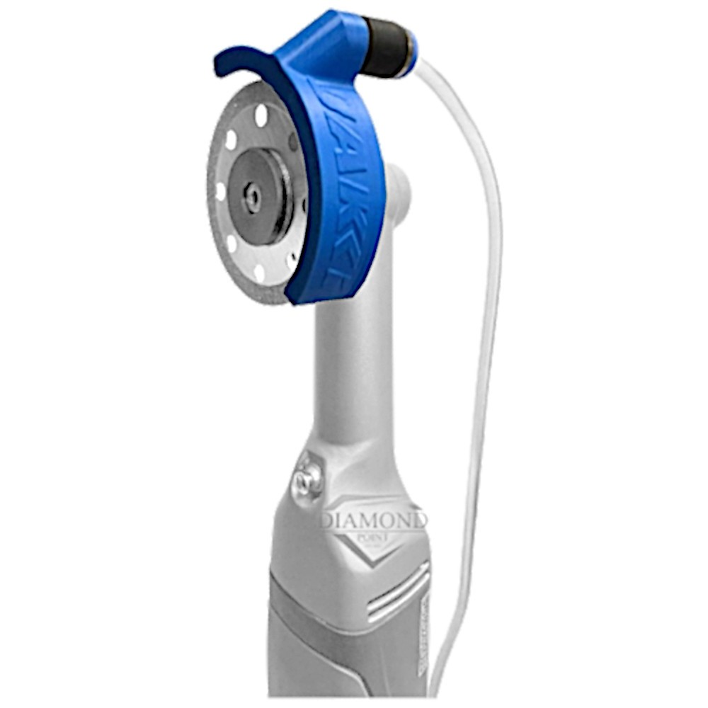 Osłona umożliwia precyzyjne cięcie na mokro dzięki możliwości podpięcia wężyka do źródła wody oraz regulacji przepływu. Zastosowanie chłodzenia wodnego znacząco ogranicza pylenie oraz zmniejsza ryzyko przegrzewania tarczy, co przekłada się na większe bezpieczeństwo pracy i dłuższą żywotność osprzętu. Dodatkowa regulacja kąta nachylenia pozwala dostosować ustawienie osłony do aktualnych potrzeb, zwiększając komfort i kontrolę podczas cięcia.