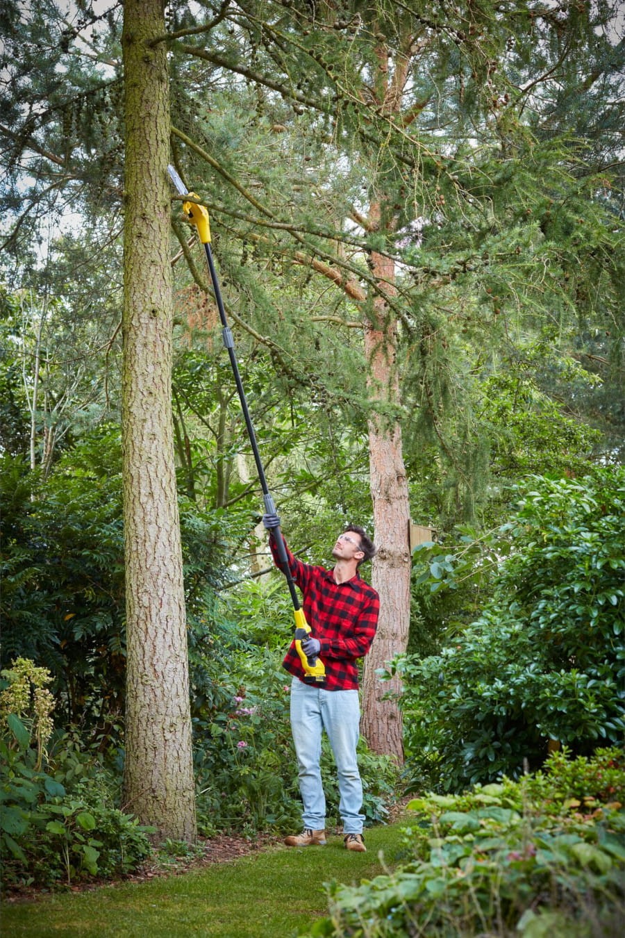 Pilarka akumulatorowa z prowadnicą o długości 20 cm oraz odpowiednio dobranym łańcuchem gwarantuj skuteczne cięcie mniejszych i trudno dostępnych gałęzi. Dzięki wysięgowi sięgającemu do 4,5 m, z pomocą przedłużacza można dotrzeć do wysoko położonych gałęzi, pozostając stabilnie na ziemi. Ukośnie ustawiona głowica i precyzyjne ostrze ułatwiają cięcie nawet w trudno dostępnych miejscach. Hamulec łańcucha działa błyskawicznie, zatrzymując go w mniej niż sekundę, co zwiększa bezpieczeństwo użytkowania.
