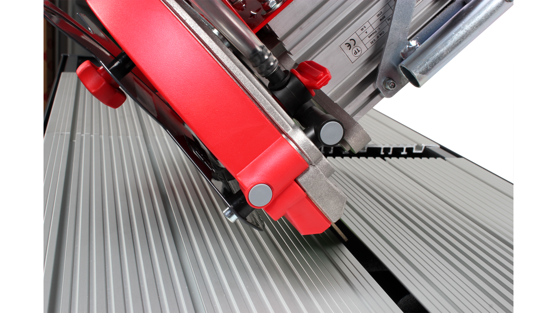 - Łożyskowana głowica tnąca z możliwością ustawienia kątowego 45° do fazowania płytek