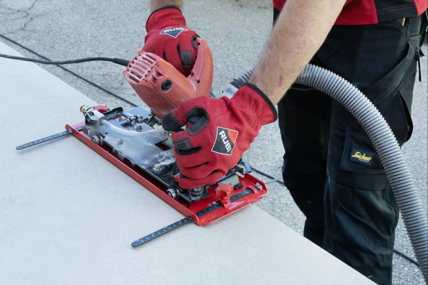 Przystawka współpracuje z przecinarką elektryczną TC-125 G2 i pozwala na pracę bez prowadnic, co zwiększa swobodę prowadzenia cięcia. Dzięki temu jest szczególnie przydatna dla fachowców, którzy potrzebują elastycznego i szybkiego działania. Została stworzona z myślą o obróbce dużych formatów, co zapewnia jej szerokie możliwości zastosowania. Umożliwia dopasowanie techniki pracy do konkretnego zadania bez ograniczeń związanych z rozmiarem płytek.