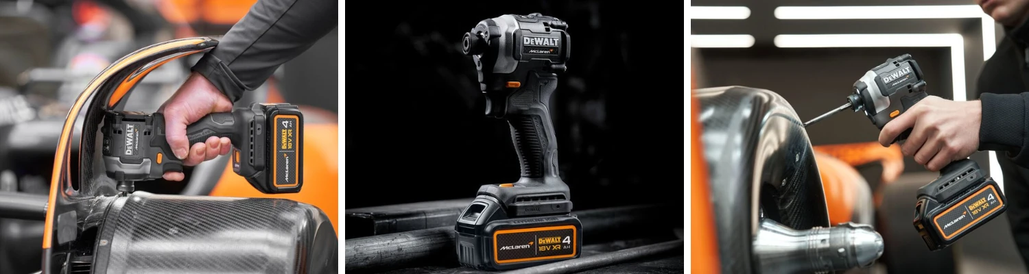 Zakrętarka udarowa DeWALT DCF85M z limitowanej serii McLaren to połączenie kompaktowej budowy i wyjątkowej mocy. Wyposażona w nowoczesny silnik bezszczotkowy, generuje maksymalny moment obrotowy 205 Nm, co czyni ją idealnym narzędziem do wymagających prac budowlanych, przemysłowych i motoryzacyjnych. Dzięki długości zaledwie 100 mm świetnie sprawdza się w trudno dostępnych miejscach. Trzy tryby pracy, w tym Precision Drive, zapewniają precyzję i pełną kontrolę nad wykonywanymi zadaniami. Zintegrowane oświetlenie LED w formie pierścienia „Halo” gwarantuje doskonałą widoczność obrabianej powierzchni. To niezawodne narzędzie 18V to doskonały wybór dla profesjonalistów ceniących wydajność, trwałość i nowoczesny design inspirowany Formułą 1.