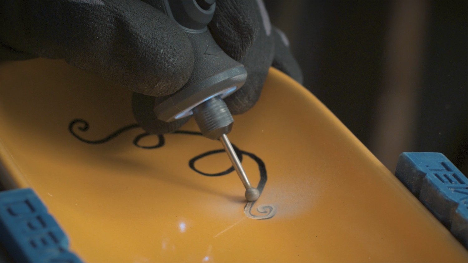 Ściernica diamentowa 4,4 mm (7105). Największa kulkowa końcówka diamentowa do grawerowania w twardych materiałach. Do takich materiałów jak: węgiel, skóra, guma, tworzywa sztuczne, cegły, miękkie metale, miękkie drewno, drewno do wypełnienia, szkło, miedź, srebro, złoto, mosiądz, materiały ceramiczne, porcelana.