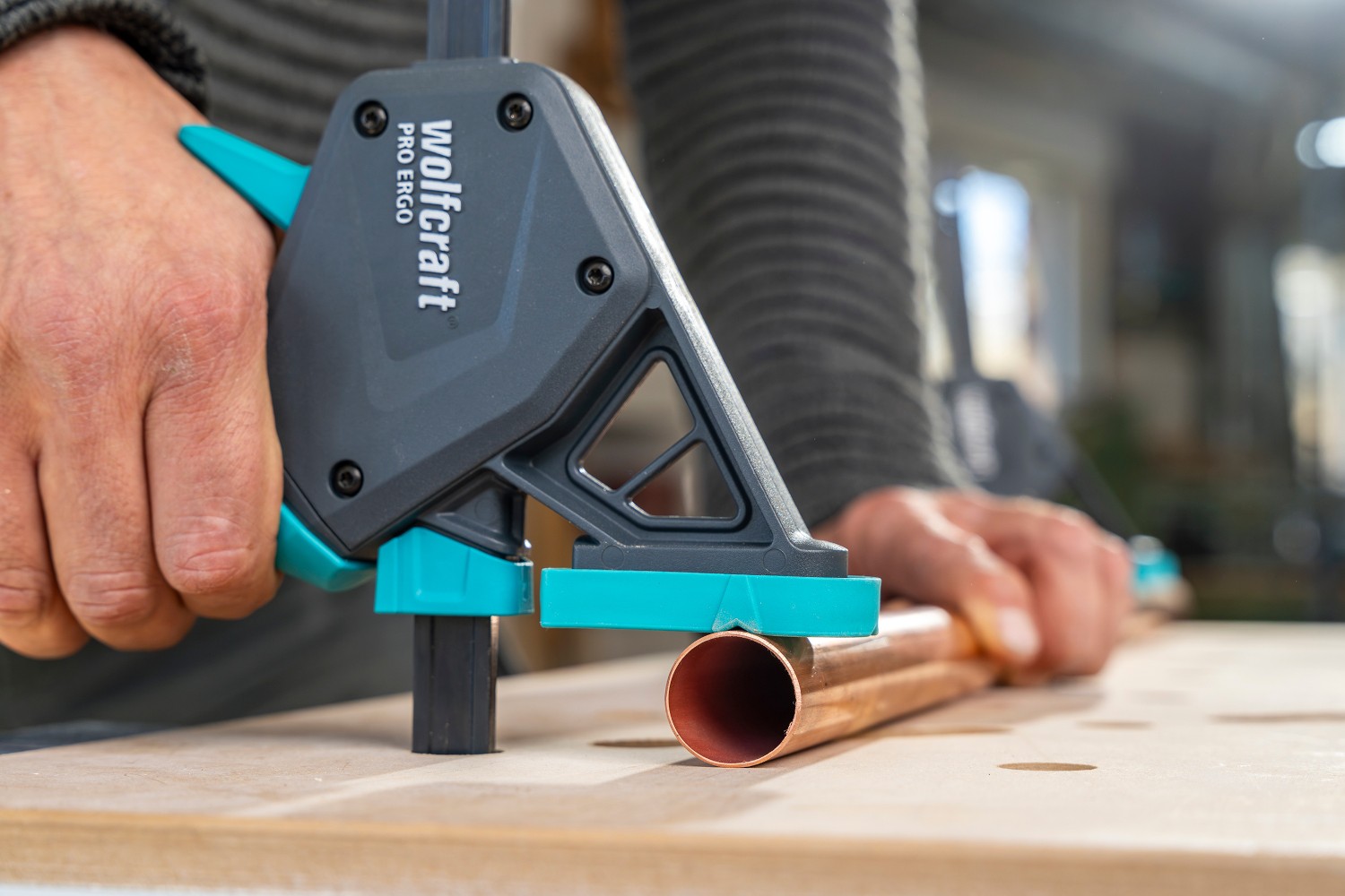 Pro Ergo Wolfcraft to także narzędzie o wszechstronnym zastosowaniu dzięki możliwości szybkiej i beznarzędziowej przebudowy w rozpierak. Wystarczy zmienić położenie szczęk zaciskowych, aby zyskać zupełnie nową funkcję, bez konieczności sięgania po dodatkowe narzędzia.