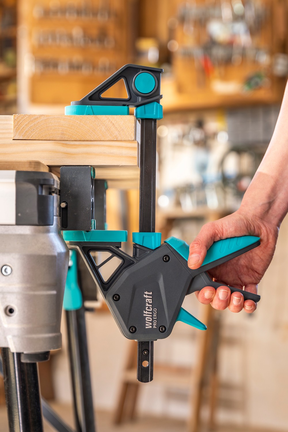 Zwarta, solidna budowa oraz wysoka siła utrzymywania sprawiają, że Pro Ergo Wolfcraft jest narzędziem wyjątkowo niezawodnym, także przy intensywnym i długotrwałym użytkowaniu. To połączenie funkcjonalności, ergonomii i trwałości, które gwarantuje profesjonalne rezultaty w każdej sytuacji.