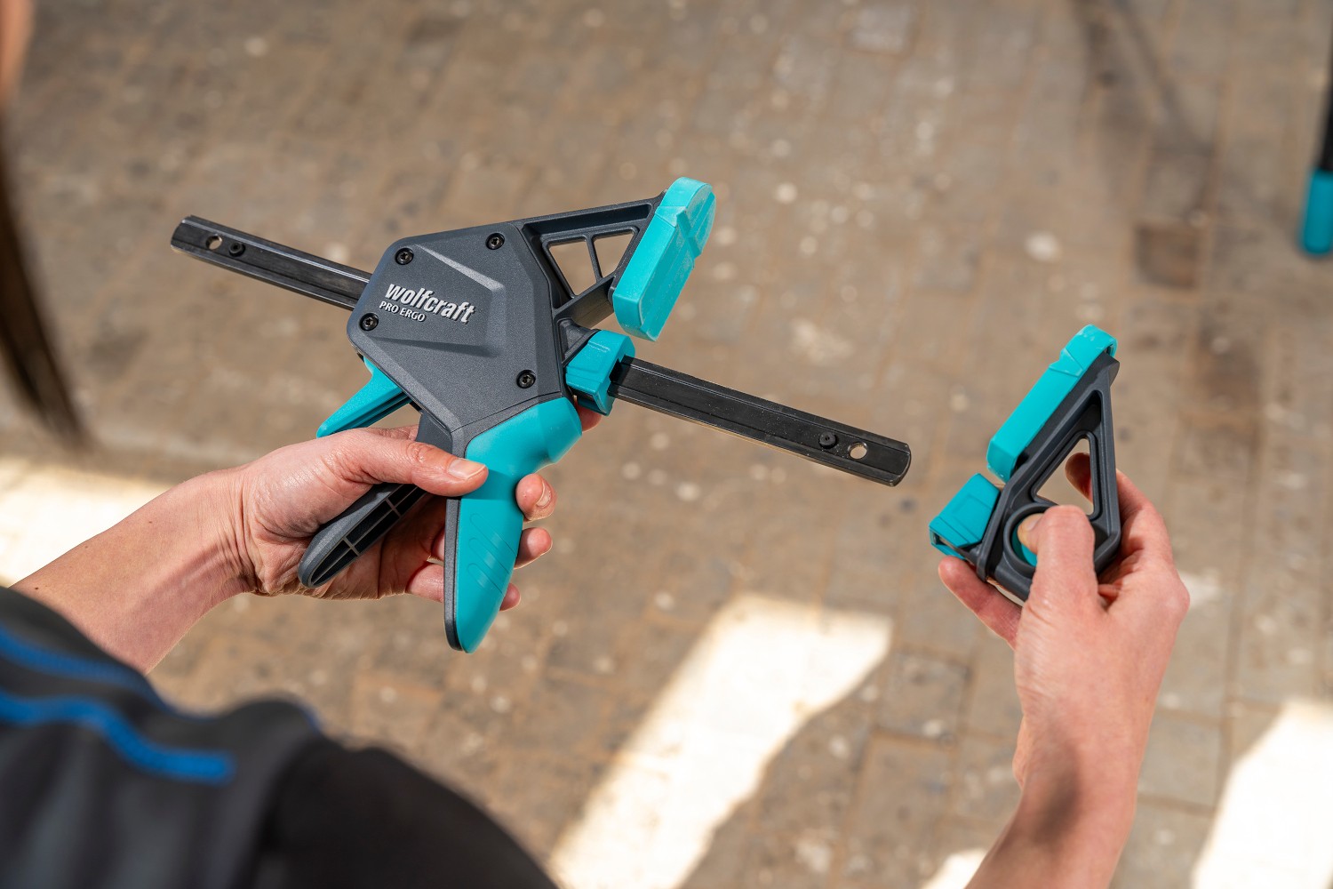 Pro Ergo Wolfcraft to także narzędzie o wszechstronnym zastosowaniu dzięki możliwości szybkiej i beznarzędziowej przebudowy w rozpierak. Wystarczy zmienić położenie szczęk zaciskowych, aby zyskać zupełnie nową funkcję, bez konieczności sięgania po dodatkowe narzędzia.