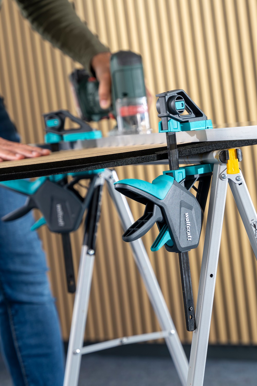 Pro Ergo Wolfcraft to także narzędzie o wszechstronnym zastosowaniu dzięki możliwości szybkiej i beznarzędziowej przebudowy w rozpierak. Wystarczy zmienić położenie szczęk zaciskowych, aby zyskać zupełnie nową funkcję, bez konieczności sięgania po dodatkowe narzędzia.