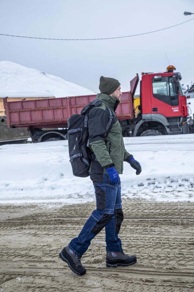 - Wytrzymałość i ochrona: Model L40510 posiada podwójne szwy oraz dodatkowe wzmocnienia w kroku, co znacząco zwiększa odporność na uszkodzenia mechaniczne. Kieszenie oraz miejsca na ochraniacze kolan zostały pokryte materiałem 600D poliester, wyjątkowo odpornym na przetarcia.