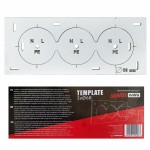 Szablon do otworów SENDI to praktyczne narzędzie przeznaczone do precyzyjnego oznaczania i wiercenia trzech otworów o średnicy 68 mm, które odpowiadają standardowym wymiarom puszek elektrycznych stosowanych w instalacjach. Dzięki niemu możliwe jest szybkie i dokładne wyznaczenie miejsc pod montaż gniazdek, włączników oraz innych elementów elektrycznych.