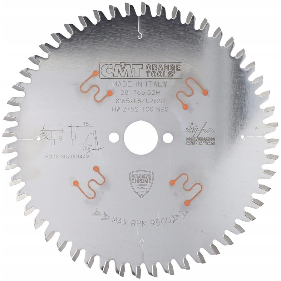 - Piła tarczowa do cięcia HPL 165 x 20mm 52z Orange Chrome CMT 281.766.52H