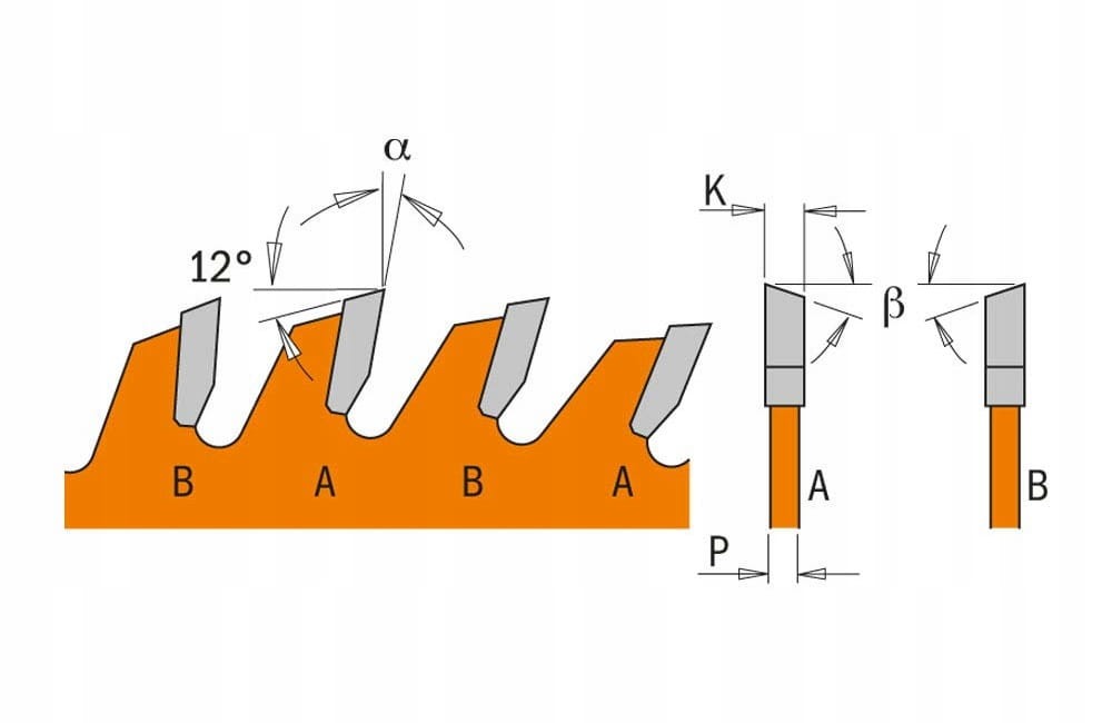 - Kształt zęba (ß) 10° ATB + 8° SHEAR