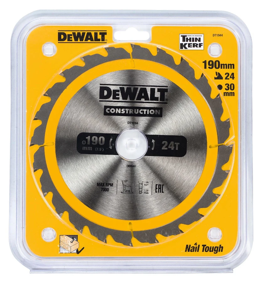 Tarcza pilarska budowlana do drewna 190 x 30mm 24z Dewalt Construction DT1944