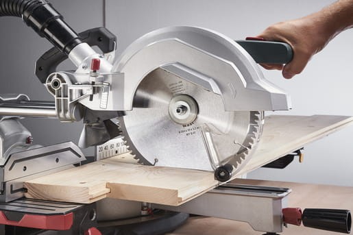 - Specjalna geometria zębów trapezowo-płaskich dodatkowo wydłuża żywotność tarczy utrzymując dobrą jakość cięcia, natomiast negatywny kąt natarcia zapewnia bezpieczną pracę, ponieważ materiał dociskany jest do ogranicznika.