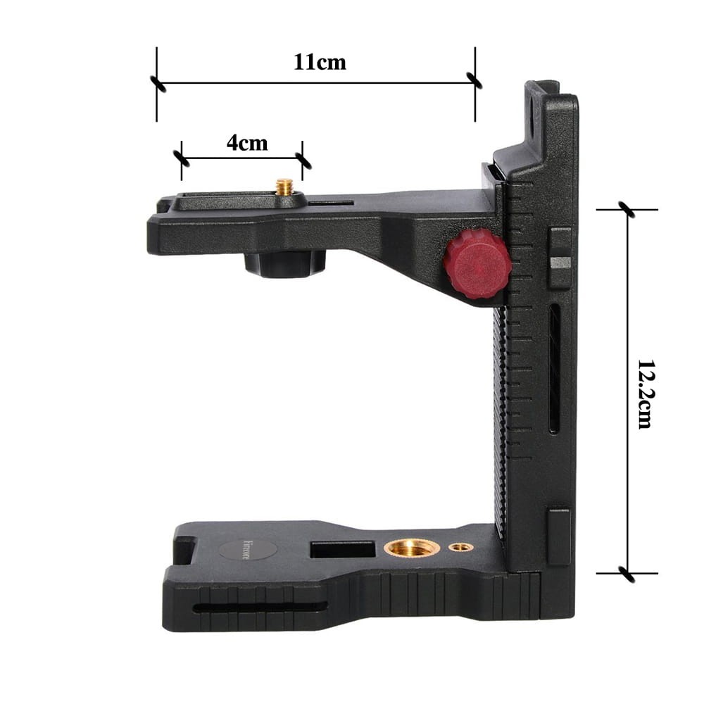 - Uchwyt posiada gwint 1/4" do mocowania laserów co jest standardem i umożliwia zamocowanie praktycznie wszystkich tego typu urządzeń dostępnych na rynku.