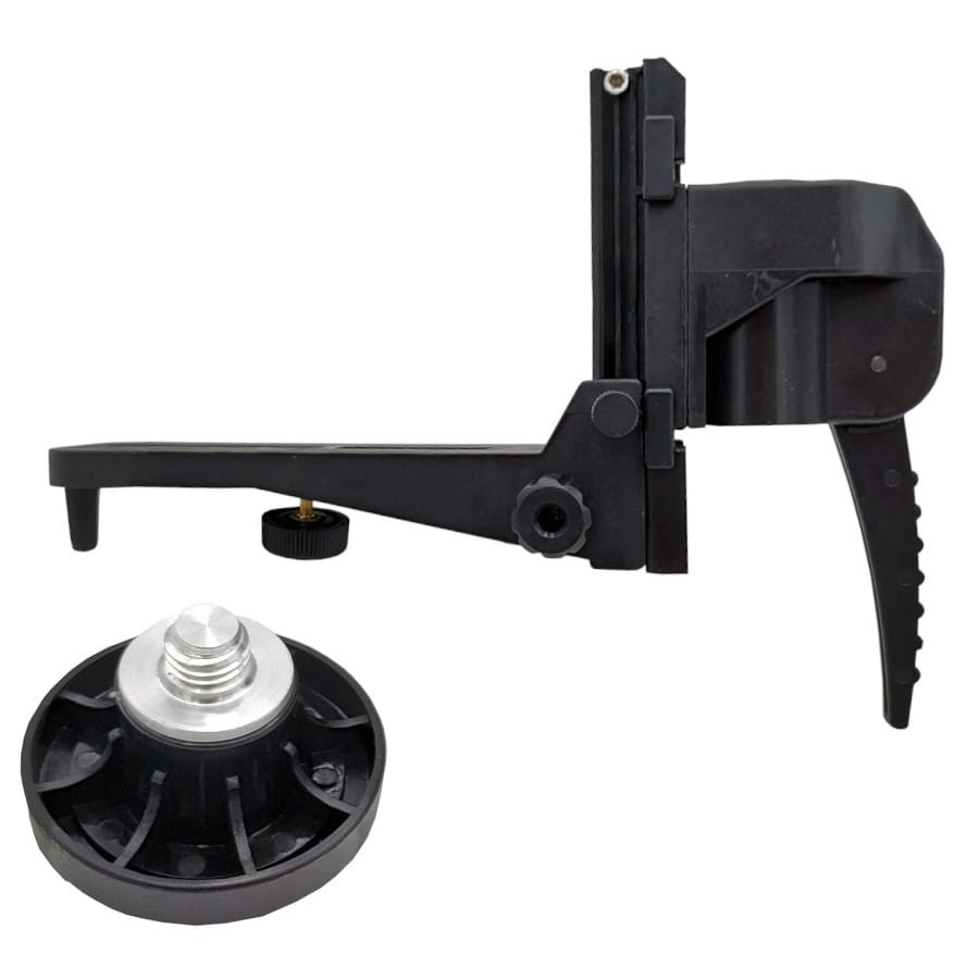 - Uchwyt do mocowania lasera posiada uniwersalny gwint 1/4" który pasuje do większości laserów dostępnych na rynku. Po ustawieniu żądanej wysokości uchwyt z zamontowanym laserem możemy szybko i wygodnie zablokować klamrą dociskową. Dodatkowo na samym uchwycie mamy możliwość precyzyjnej regulacji wysokości +/- 7cm dla idealnego wpasowania się z wysokością linii lasera