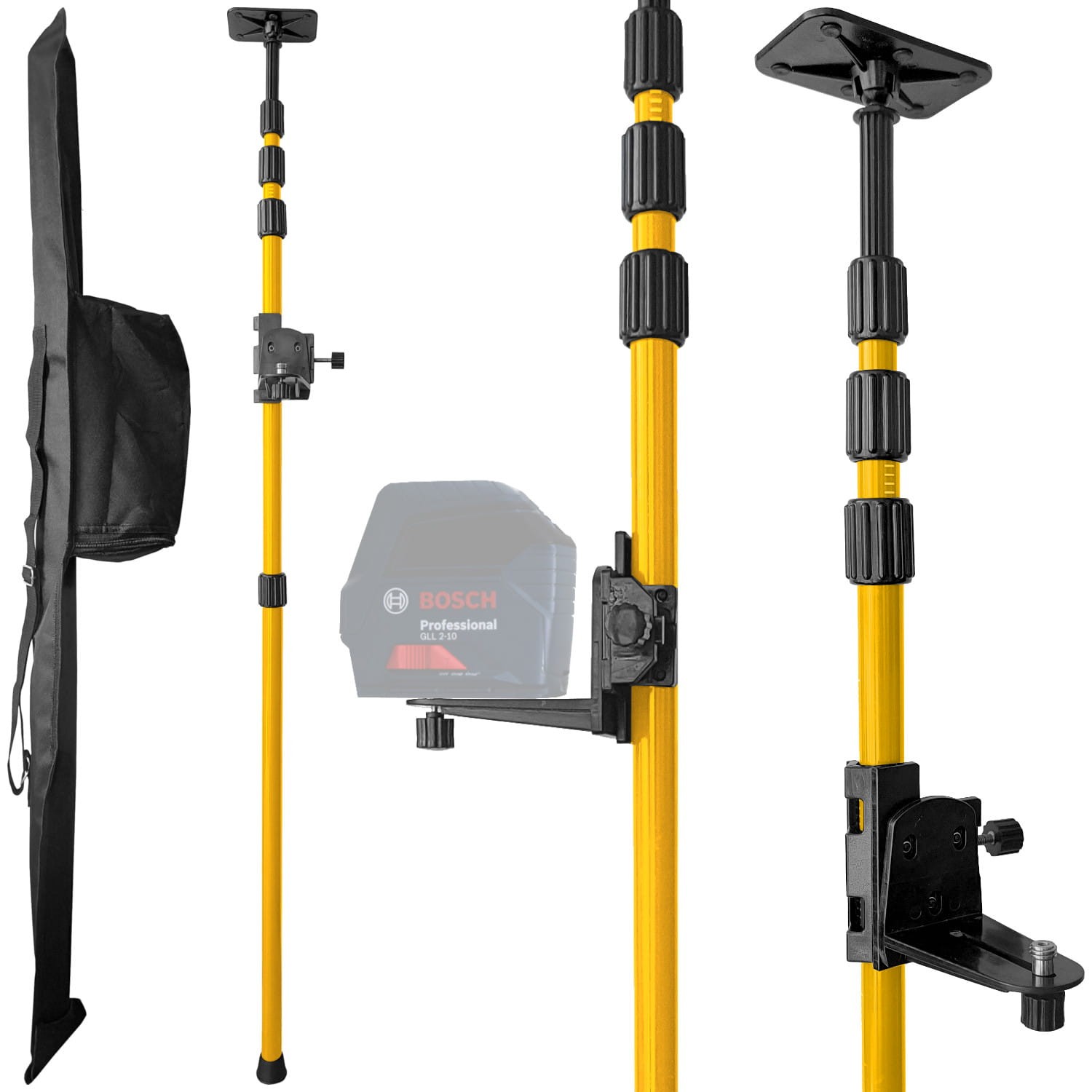 - Teleskopowa tyczka DW-320 zapewnia sprawne i szybkie mocowanie urządzeń laserowych na wysokości od 10 do 320cm. Drążek mocowany jest między podłogą a sufitem co umożliwia ustawienie urządzenia na praktycznie każdej wysokości w danym pomieszczeniu