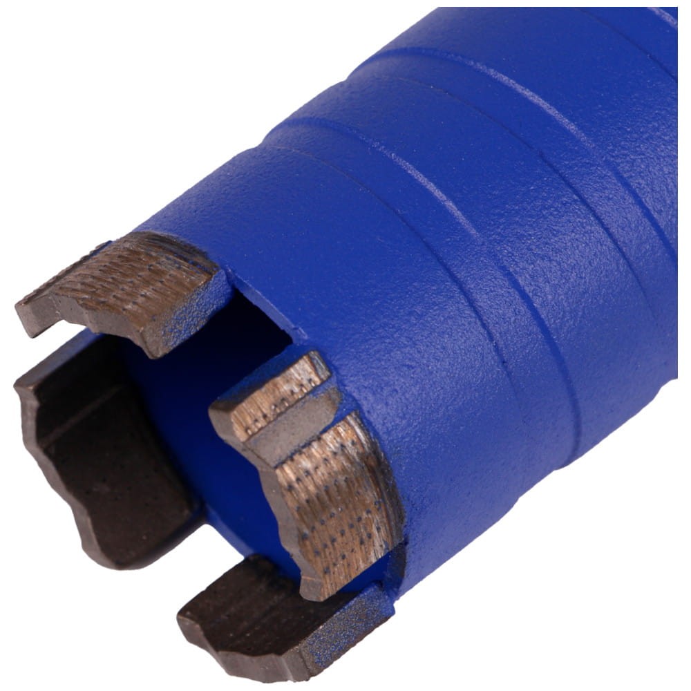 Wiertła diamentowe charakteryzują się wysoką szybkością tworzenia otworów w ścianach pod kable i rury. Jest to szczególnie przydatne przy wierceniu w ciężko zbrojonym betonie na sucho, gdy chłodzenie wodą jest niemożliwe lub niepożądane. Wiertło RM-TX przeznaczone jest do szybkiego wiercenia ciężkich materiałów w trybie suchym. Posiada segmenty diamentowe z zorientowanym diamentem. Turbo kształt segmentu i wydajne wiązanie umożliwiają skuteczne wiercenie z dużą prędkością. Doświadcz niezrównanej prędkości wiercenia! Wiertła RM-TX są dostępne z trzpieniem 1 ¼ UNC. Przeznaczone do ręcznych wiertnic z mikroudarem, bez konieczności stosowania chłodzenia.