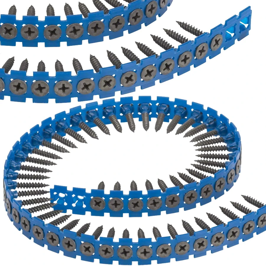 - Taśma wkrętów ma gruby gwint zapewniający szybką pracę przy płytach gipsowo-kartonowych