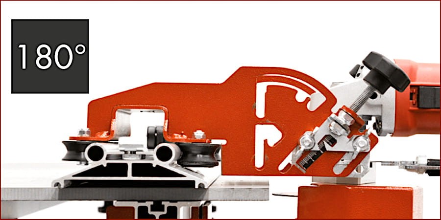 - Konstrukcja wózka pozwala na korzystanie z tarczy o średnicy 125 mm oraz umożliwia cięcie zarówno prostego, jak i pod kątem