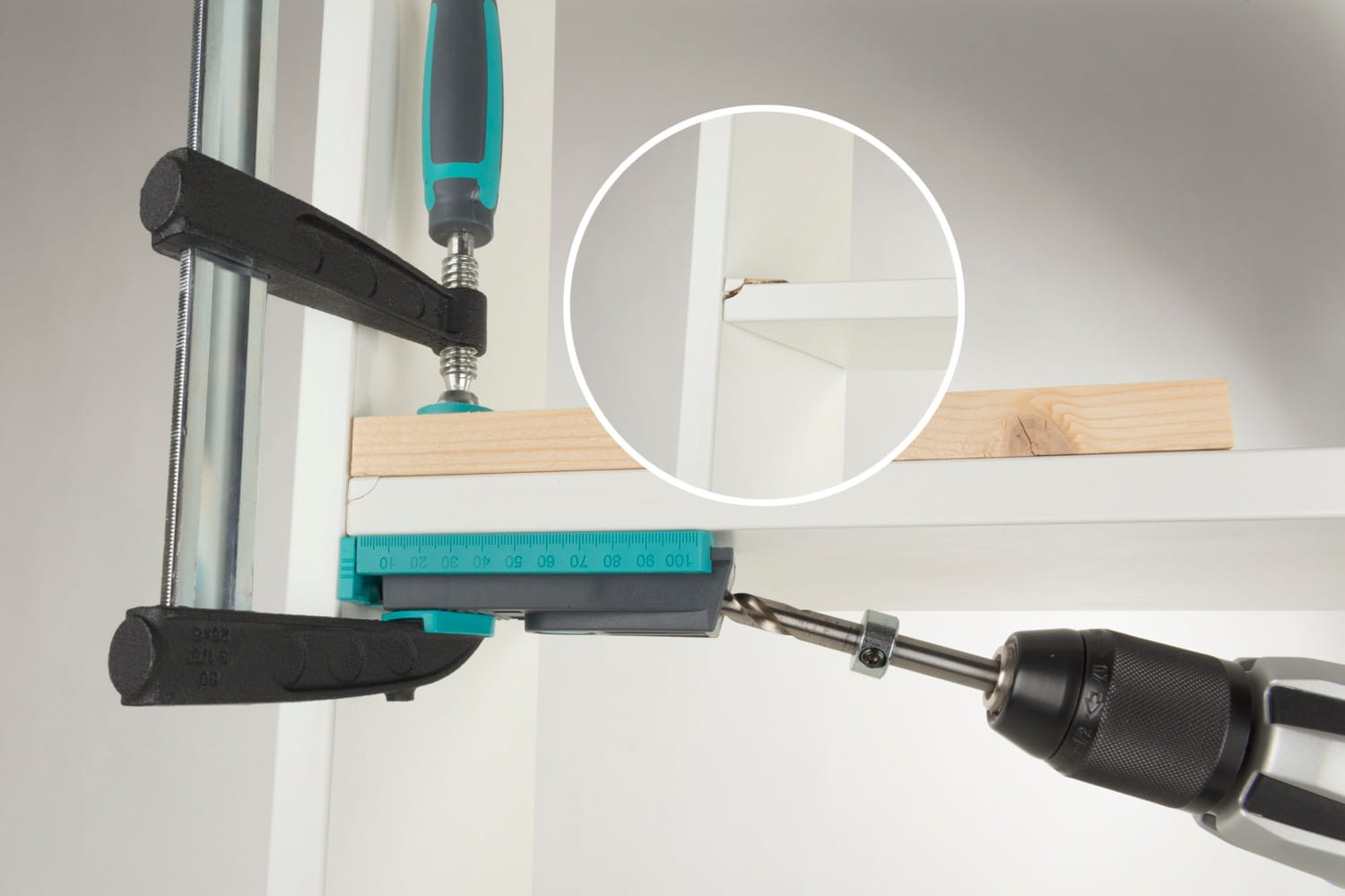Zestaw Undercover Jig świetnie sprawdza się zarówno przy budowie nowych mebli, jak i w pracach naprawczych – np. przy wzmacnianiu półek, szuflad, regałów czy szaf.