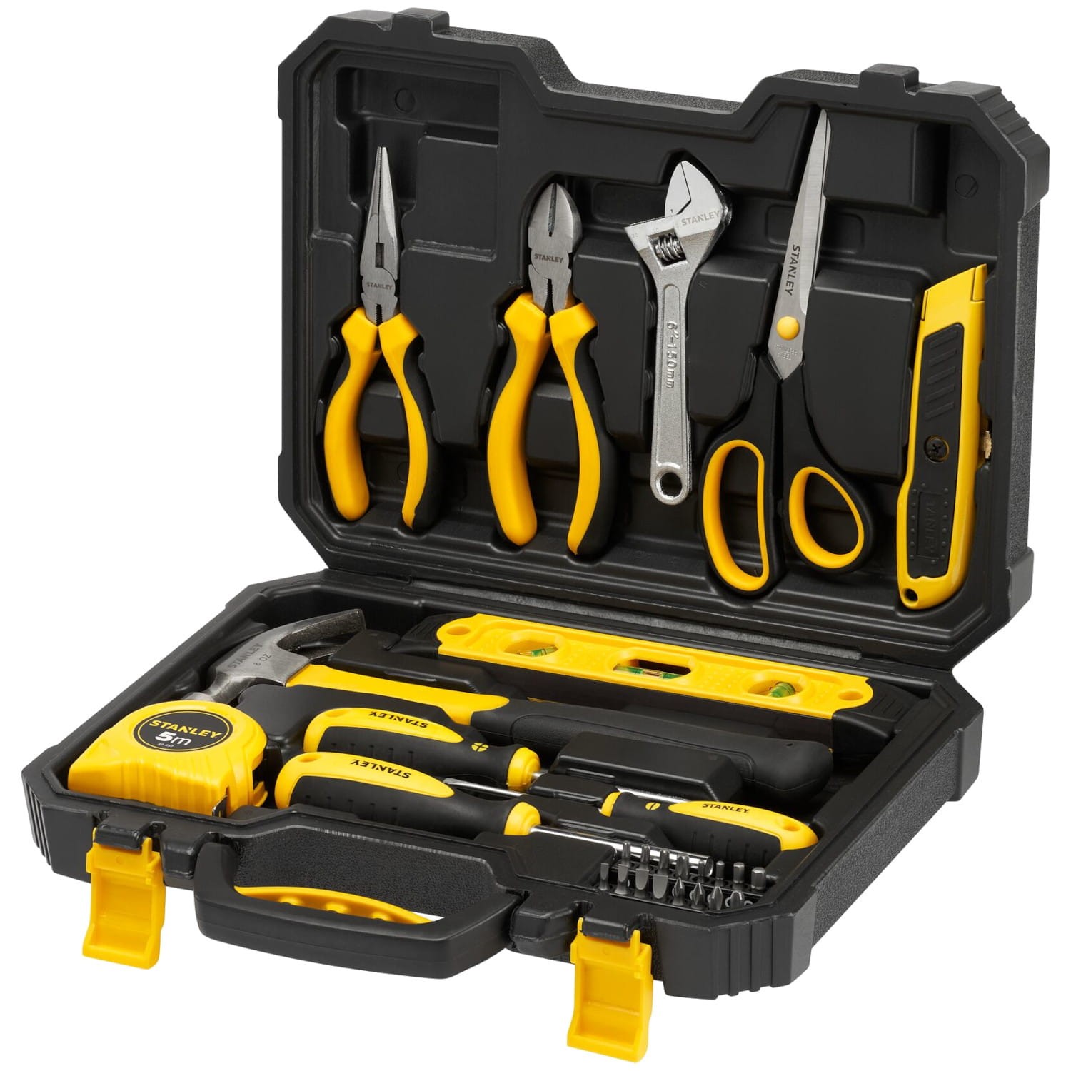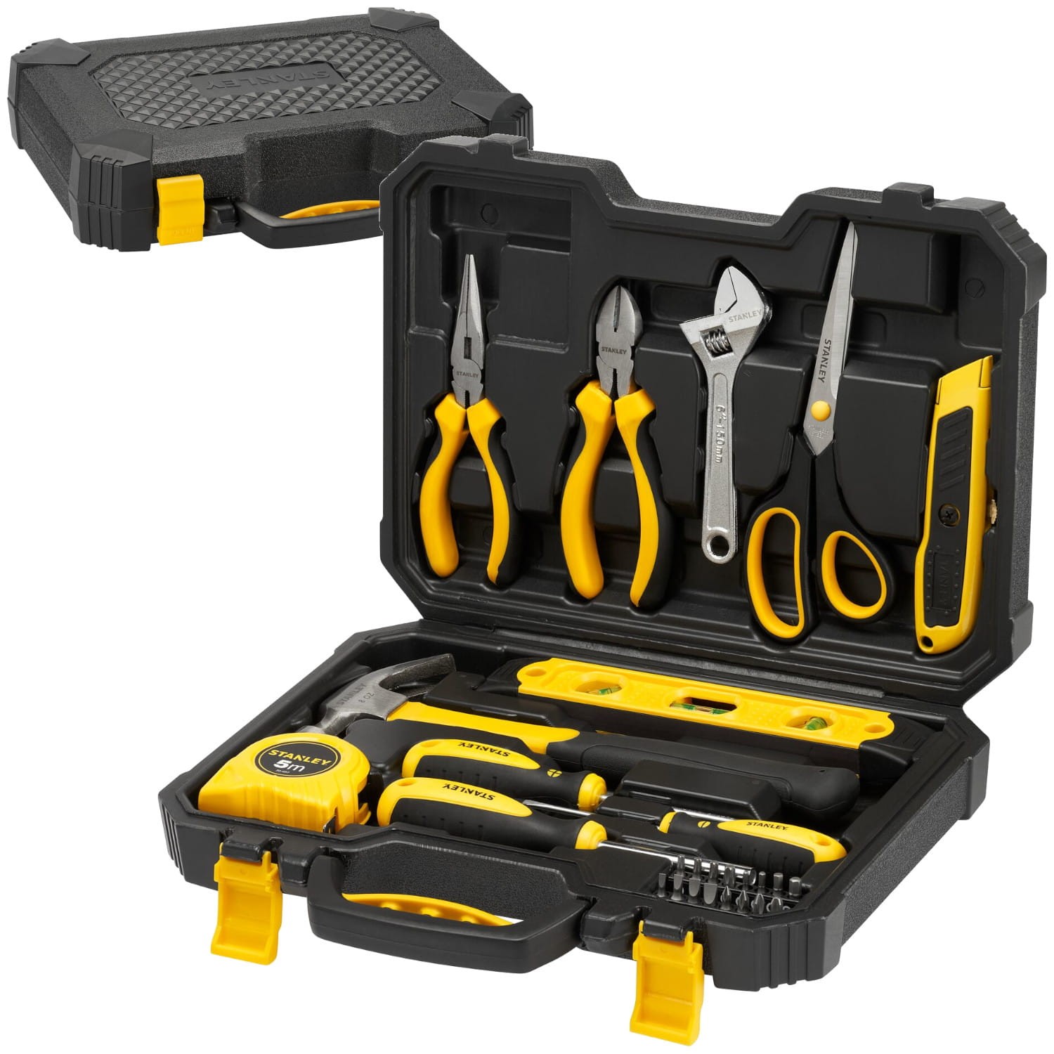 Zestaw narzędzi ręcznych Stanley STHT78050-1 to wszechstronny zestaw, zaprojektowany do wykonywania szerokiego zakresu prac i napraw w domu. Narzędzia wykonane są z wytrzymałej stali węglowej, co zapewnia długotrwałą trwałość i odporność na uszkodzenia. W pełni polerowane wykończenie chromowe chroni narzędzia przed korozją, przedłużając ich żywotność. Każdy element zestawu jest starannie uporządkowany w uformowanej walizce, która zapewnia łatwy dostęp do narzędzi i wygodne przechowywanie. Dzięki wbudowanemu uchwytowi, walizkę można łatwo przenosić, co ułatwia transport narzędzi.
