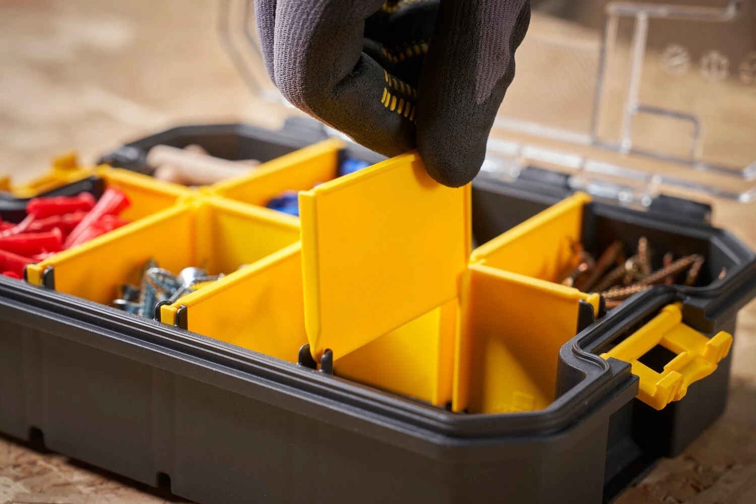 Wnętrze organizerów można dowolnie konfigurować za pomocą wyjmowanych przegród, co pozwala dostosować je do indywidualnych potrzeb oraz rodzaju przechowywanych elementów.