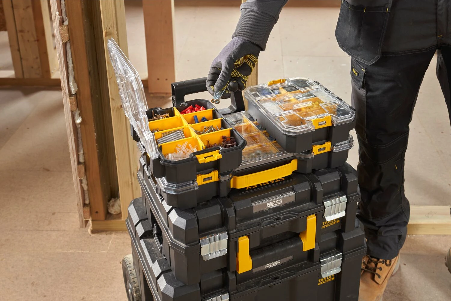 Dzięki solidnym bocznym zatrzaskom organizery można łączyć z innymi modułami systemu PRO-STACK™, tworząc spójny, funkcjonalny i mobilny zestaw.