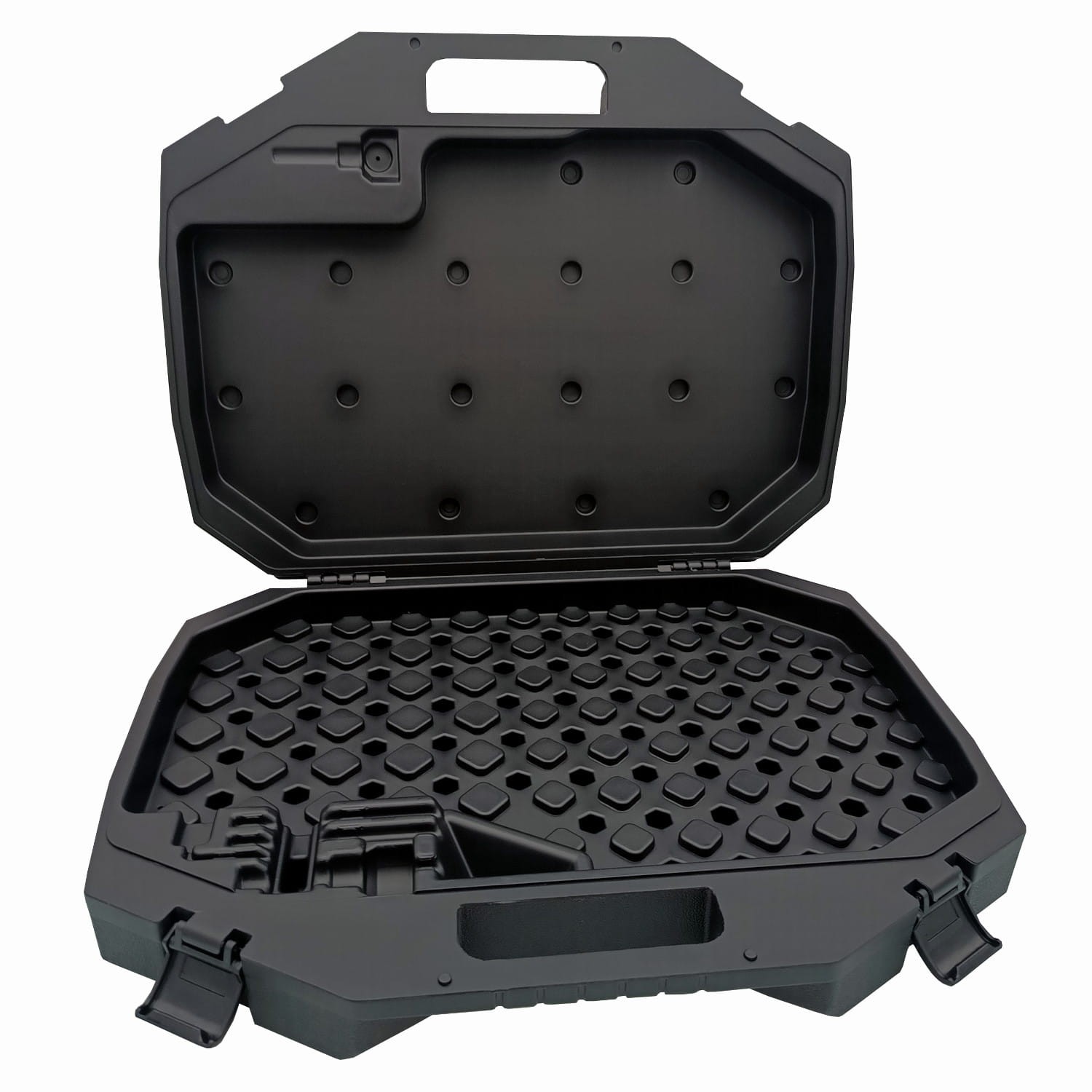 Walizka narzędziowa XXL czarna na otwornice ITA Tools 03.01.0533 to solidne i wytrzymałe rozwiązanie do przechowywania narzędzi. Wykonana z odpornego plastiku, wyposażona w dwie klamry, skutecznie chroni przechowywane narzędzia. Dzięki wygodnemu uchwytowi, jej transport jest łatwy i komfortowy. Zapewnia wyjątkową trwałość i mobilność, oferując profesjonalną alternatywę dla tradycyjnych skrzynek narzędziowych. 63 otwory umożliwiają doskonałą organizację otwornic.